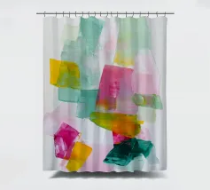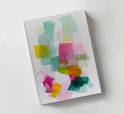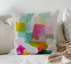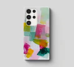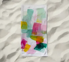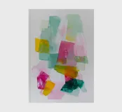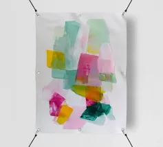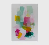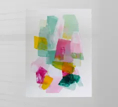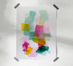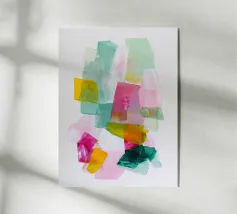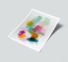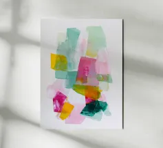 This modern, abstract acrylic poster uses vibrant splashes of pink, green, yellow and white. The flowing colours and geometric structures create a harmonious and dynamic composition. Ideal as a decorative work of art, it brings a fresh mood to any room.