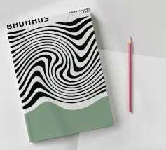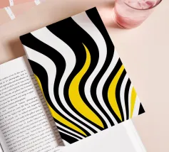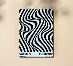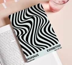 The composition features flowing black and white patterns with soft curves that evoke a sense of rhythm and fluidity, enhancing the visual experience with its dynamic appeal.