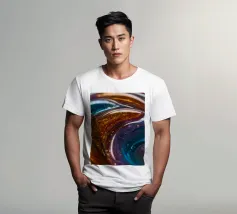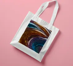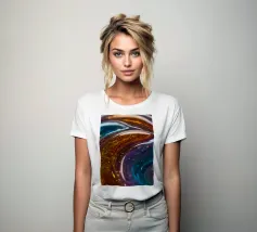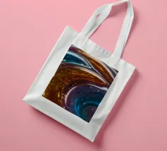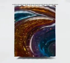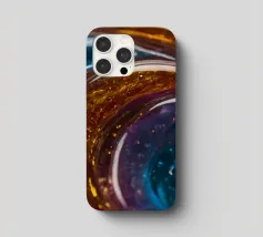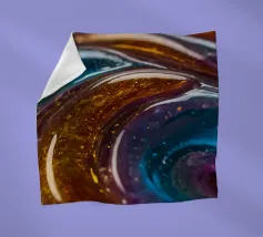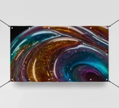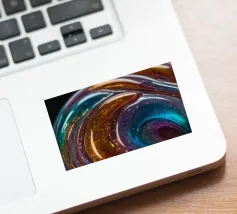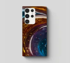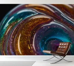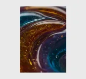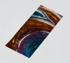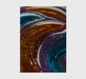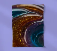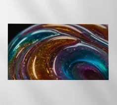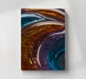 This resin art piece showcases an intricate swirl of vibrant colors and textures, featuring deep blues, rich golds, and an array of glowing accents. The detail highlights the artistry involved.