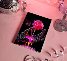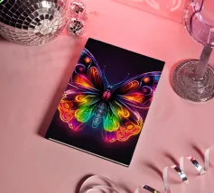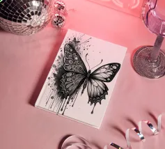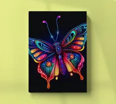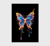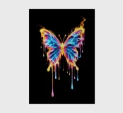 This captivating artwork features a striking contrast of deep black, with a mesmerizing glowing butterfly at its heart. The butterfly appears to be in a state of transformation, its delicate wings melting and dripping with luminous energy, creating an ethereal, almost otherworldly effect. The dark background serves to amplify the soft, radiant glow of the butterfly, drawing the viewer's eye to its intricate details and dynamic movement. Ideal for those who appreciate modern, surreal art with a touch of mysticism.
