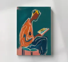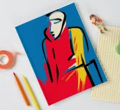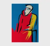 Neo-expressionist power meets the graphic clarity of modernism: this minimalist, almost iconic "DENKER" captivates with its monumental simplicity. The bold primary colours are reminiscent of Matisse's silhouettes and the expressive power of the Brücke artists. The thick black contours lend the composition a trendy comic-like directness, while the figure's pensive pose creates a meditative depth. The dynamic brushstrokes and energetic splashes of colour break up the static pose. An ode to thinking for oneself, for daily motivation.