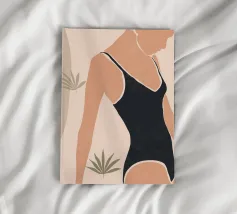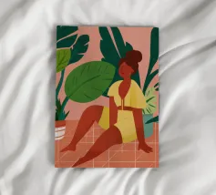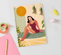 Bohemian boho brown woman fashion sunny summer pose watercolor portrait plant lady waiting