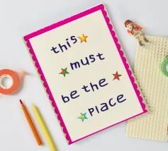 A bold and nostalgic typographic print featuring "This Must Be The Place" in chunky retro letters. Perfect for adding a cozy, welcoming touch to any home with its warm, optimistic, and vintage aesthetic. A colorful statement piece that brightens up any space, ideal for lovers of retro fonts and dopamine decor. By showmemars