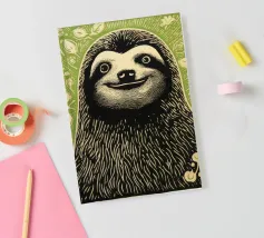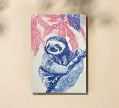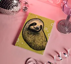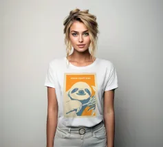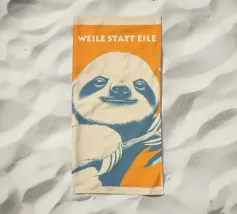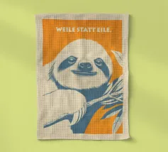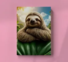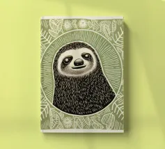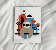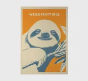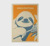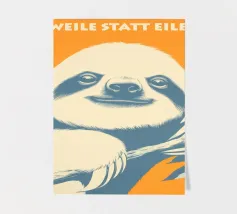 This charming motivational poster combines 1940s-style propaganda aesthetics with contemporary humour to create an endearing message of slowing down. The smiling sloth in vintage screen print style is reminiscent of Shepard Fairey's iconic works, while the warm orange-blue palette radiates pure cosiness. "Take your time, don't rush" becomes a likeable motto for life - perfect for offices and living spaces designed to promote relaxed productivity and mindful living.