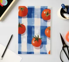 The cheerful and colorful design features a fresh and appetizing tomato pattern.