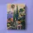 A coastal villa is surrounded by tall, dark cypress trees under a deepening twilight sky, the last light catching the sea and creating a moody, atmospheric, and romantic Mediterranean scene.