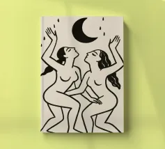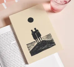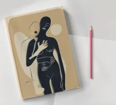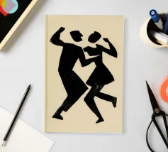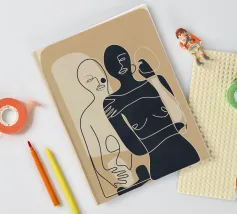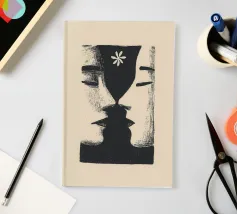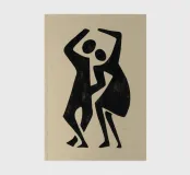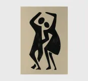 Two abstract figures drawn in black stand side by side, connected by a fine line. Minimalist and clearly contrasting on a light-coloured background, the composition conveys closeness, balance and a silent communication between the forms.