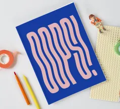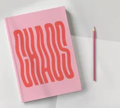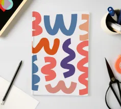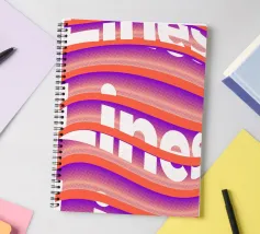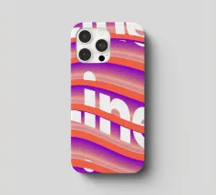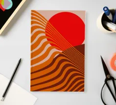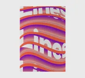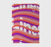 Red curves twist a white typeface against a purple-orange background. The wave effect transforms the word into a graphic structure. The halftone grain adds a raw texture reminiscent of screen printing. This piece brings a retro-futuristic touch to any workspace or creative room. It's an eye-catcher that adds rhythm and contrast to an overly smooth wall.