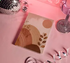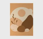 This artwork showcases a blend of abstract shapes in warm tones, incorporating natural forms and textures. It evokes a sense of calm and creativity, perfect for contemporary spaces.