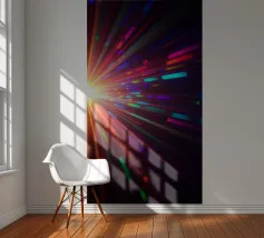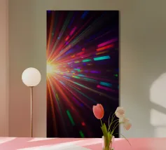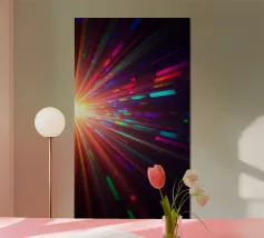 Bright, colorful rays of light burst outward from a central source, creating a striking abstract design perfect for mobile wallpapers. The vibrant patterns offer a modern aesthetic.
