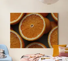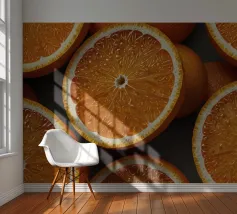 Freshly cut orange slices showcase their bright colors and juicy texture, arranged beautifully on a dark background. A delightful display of citrus freshness inviting enjoyment.