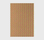 A complex geometric pattern features a repetitive design of interlocking squares and rectangles in warm tones like orange and brown. The symmetrical arrangement creates an optical illusion effect, adding visual interest and depth.