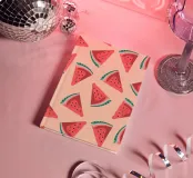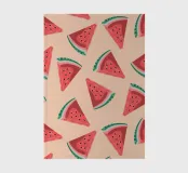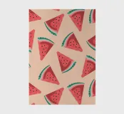 This refreshing digital poster features a playful, repeating pattern of vibrant watermelon slices. Each slice is depicted with juicy red flesh, dark seeds, and a crisp green rind, all scattered across a soft, pale peach background. The cheerful colors and repetitive motif create a fun, summery, and pop art aesthetic. This high-quality digital poster, offered at 7000x5000 pixels and 300 dpi, brings excellent art and a joyful, fresh vibe to any space.