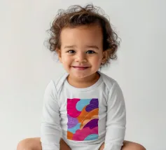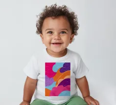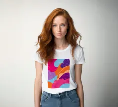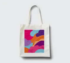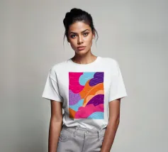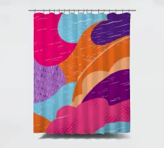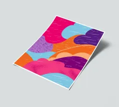 An abstract pattern of wavy, flowing lines in shades of pink, purple, and orange creates a dynamic and visually engaging design with a sense of fluid movement.