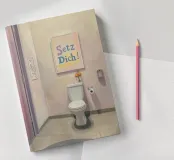 A humorous bathroom poster in soft pastel colours with the cheerful text "Sit down" invites you to smile in the guest toilet. With minimalist graphics and toilet paper and hand-drawn elements, it creates a fun atmosphere and sends a clear message against standing up to pee!