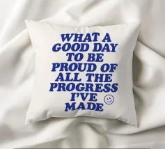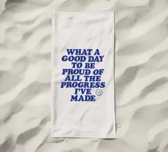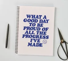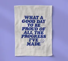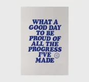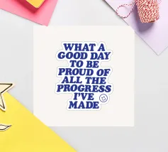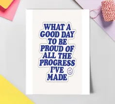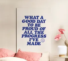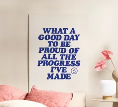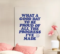 Elevate your space with this retro-inspired typography art print. Featuring bold blue capital letters on a soft beige background, it delivers a powerful message of self-appreciation and growth. The addition of a charming smiley face adds a touch of whimsy. Perfect for home offices, bedrooms, or living spaces, this print serves as a daily reminder to celebrate personal achievements and progress. Its vintage aesthetic and uplifting message make it an ideal gift for friends, family, or yourself.