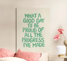 Celebrate your journey with this uplifting typography art print, featuring the phrase “What a Good Day to Be Proud of All the Progress I've Made.” Hand-drawn in stylish pastel green lettering, its scrawly yet elegant design pops against a soft beige background, creating a soothing and motivational aesthetic. Perfect for adding charm to your space or gifting to someone embracing self-growth. Printed on premium paper with fade-resistant inks, this eco-friendly piece is ideal for gallery walls or standalone display. A thoughtful present for birthdays, graduations, or any milestone celebration.