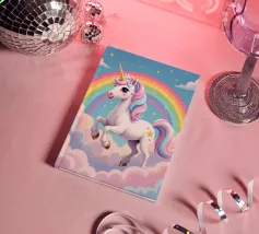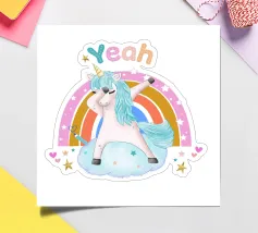 Girls big and small love them, the dreamy, cute mythical creatures with the unicorns, the dancing unicorns. This pink unicorn is having lots of fun and really rocks with its turquoise-coloured mane on its cloud. Come on, personalise your design and make it your favourite. Maybe it's perfect for your birthday party, your hen party, your children's party, your student party, your special girls' night out. Who knows ... ;-)