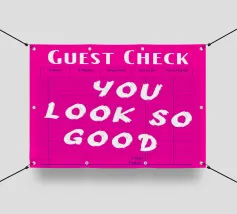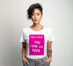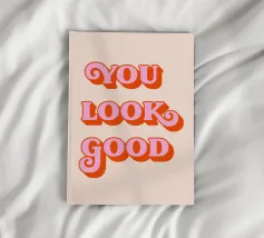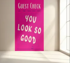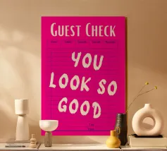 Deliver a compliment with a twist using this vibrant digital poster, styled as a classic "GUEST CHECK." Against a bold, hot pink background, the encouraging message "YOU LOOK SO GOOD" is written in a confident white script, blending retro diner aesthetics with modern self-love. This high-quality digital print (7000x5000 pixels, 300 dpi) is perfect for adding a playful, empowering, and stylish statement to a kitchen, dressing room, or any space needing a pop of color and a feel-good message.