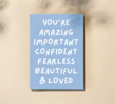 This calming artwork pairs soft blue retro text with a pale backdrop to gently counter comparison and pressure. A reassuring companion for bedrooms, home offices or therapeutic spaces, it offers space to breathe and honour your pace. A thoughtful gift for those feeling stuck or starting over—perfect for new beginnings, graduations or quiet support. This print reminds us that timelines aren’t fixed, and your path is unfolding just as it should.