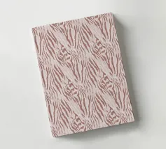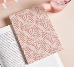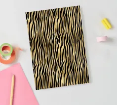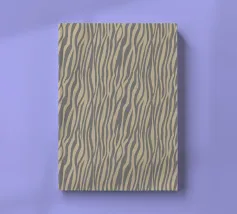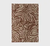 An abstract pattern resembling zebra stripes with irregular brown lines on a beige background. The design has an organic flow.