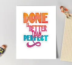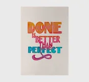 A nice saying on the subject of perfection. Having done and finished something is much better than claiming to have done it perfectly. About the design itself: a genuine signature CalliLetters artwork - colourful, hand-lettered, expressive, cheerful. A beautiful hand lettering design in watercolour style with watercolour texture and splashes of colour.