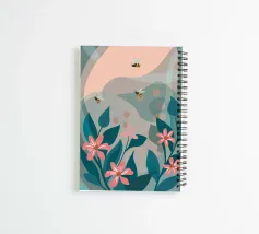 The detailed illustrations feature a variety of vibrant flowers visited by busy bees.