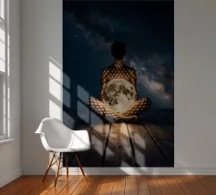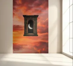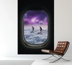 Experience the magic of travel and night skies with this atmospheric artwork featuring a hand gently touching an airplane window overlooking glowing desert dunes. A crescent moon shines in a deep blue sky filled with stars, creating a serene blend of wanderlust and wonder. The warm golden sands contrast beautifully with the cool night tones, capturing the feeling of solitude, reflection, and dreaming above the world. Perfect for travel lovers, minimalists, and fans of cinematic, dreamy window-view art.