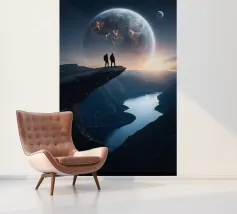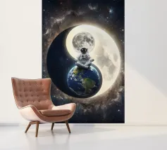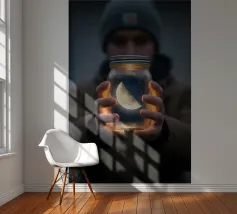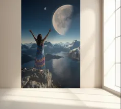 Experience the magic of travel and night skies with this atmospheric artwork featuring a hand gently touching an airplane window overlooking glowing desert dunes. A crescent moon shines in a deep blue sky filled with stars, creating a serene blend of wanderlust and wonder. The warm golden sands contrast beautifully with the cool night tones, capturing the feeling of solitude, reflection, and dreaming above the world. Perfect for travel lovers, minimalists, and fans of cinematic, dreamy window-view art.