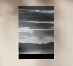 Schwarz-Weiße Kunstfotografie von einem bewölkten Himmel. Die dekorativ geschwungenen Wolken als abstraktes Bild.