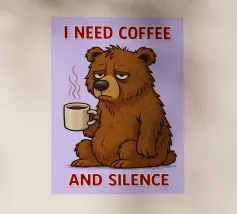 A whimsical purple monster with sharp teeth, bright yellow eyes, and a mischievous grin clutching a blue coffee mug. The playful cartoon style adds a fun, quirky vibe perfect for humorous or caffeine-themed projects.