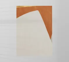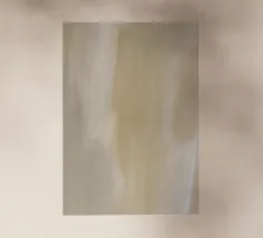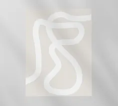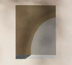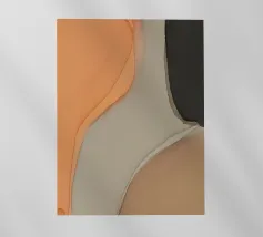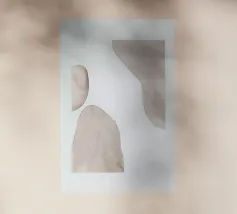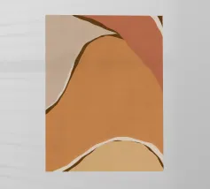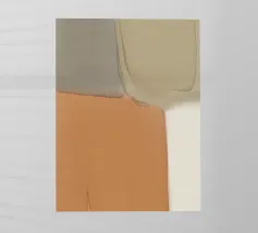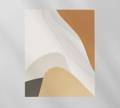 Soft, flowing shapes in earthy tones overlap to create an abstract design. The composition uses a palette of beige, brown, and gray, giving a calming and harmonious effect.