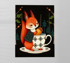 Squirrel Holding A Cup Of Coffee with fauvism painting art style