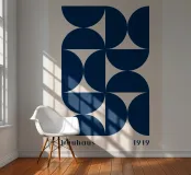 This Bauhaus-inspired design is characterised by clear geometric shapes in a harmonious blue on a neutral background. The combination of semi-circles and squares creates a dynamic yet minimalist composition. This design is perfect for lovers of modern art who want to create simple and stylish accents in their home. Ideal for murals, mugs, cushions and much more.