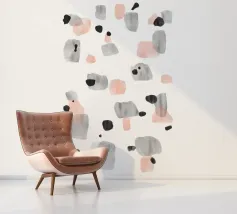 This minimalist watercolor pattern features softly scattered organic pebble shapes in warm beige and muted olive green tones. The hand-painted texture and airy white background create a calm, modern aesthetic inspired by nature and Scandinavian simplicity. Perfect for contemporary interiors, this design adds subtle character without visual clutter. Ideal for living rooms, bedrooms, offices, and stylish gallery walls seeking a balanced, natural look