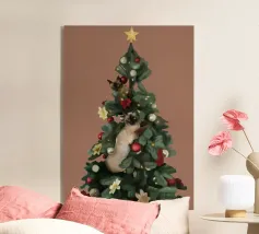 cats christmas tree christmas decorations star garlands snow holiday theme ornaments hats branches santa hat stars whiskers cat ears presents festive pine tree fur sweater nose