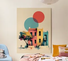 “Explore Berlin” captures the spirit of the city through a vibrant retro composition. Featuring the iconic Fernsehturm (TV Tower), a vintage bicycle, and bold architectural color blocks, this artwork is perfect for lovers of Berlin, urban design, and travel-inspired interiors.