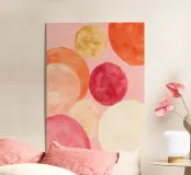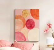 A playful yet serene abstract painting with soft, rounded forms and warm hues. This artwork brings a sense of harmony and lightness into any room.