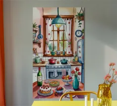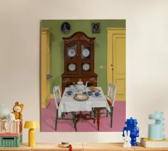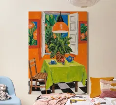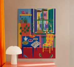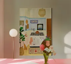 Paloma Villarreal is a Mexican-American painter and proud cat mum. Her lively works depict intimate, cosy moments. Here, lovingly organised domestic chaos is put in the spotlight, as are calmly drawing teacups, naps, domestic rituals and pantries filled with food. All bursting with colour. Paloma currently lives in Mexico City. Together with her partner and her cats, Mr Tumnus and Nissa.