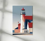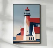 A masterful abstraction of the Hörnum Lighthouse, with layered geometric forms that suggest depth and movement. The lighthouse itself is framed by a textured background of angular elements, enhancing its prominence within the composition. The balance between shadow and light, red and white, creates a visually captivating interpretation of this historic structure. This modern coastal artwork reimagines Sylt’s iconic landmark in a fresh and contemporary light.