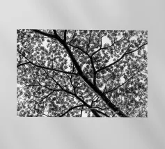 African tree. Botanical scenery in West Africa. Black and white photography in Guinea. Leaves in a tree. Travel photography in Africa.