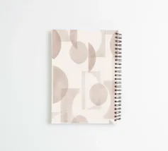 The design features a captivating arrangement of overlapping circles, rectangles, and abstracted leaf shapes, subtly hinting at organic forms within its structured framework. The grainy texture adds depth and visual interest.