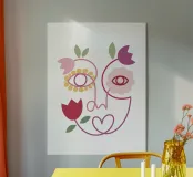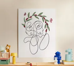 "Bloom 1" and "Bloom 2" are vibrant line art pieces that depict faces with blooming flowers emerging from them, symbolizing growth, beauty, and transformation. The colorful compositions evoke a sense of vitality and renewal, making them perfect for pairing together. The dynamic contrast between the delicate line art and the rich floral elements brings these artworks to life, offering a harmonious blend of nature and human expression.