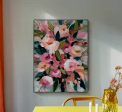 Soft blush and rose petals blend harmoniously in this dreamy floral composition. A perfect choice for feminine spaces, bringing elegance and gentle dopamine warmth.
