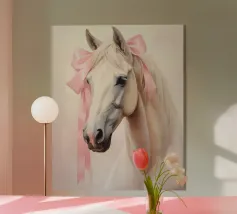 A surreal image depicting a human figure with a horse's head, elegantly wrapped in textured beige fabric. The composition conveys mystery, artistry, and a sense of otherworldly symbolism, blending human and animal elements.