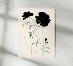 Soft blue anemone blooms unfurl on slender stems against a cream backdrop, each petal outlined in fine botanical lines and gentle watercolor shading. Traditional calligraphy spells “ANEMONE” alongside a vermilion seal, merging scientific accuracy with timeless artistry. Printed on museum-grade matte paper, this graceful botanical study enriches sunlit kitchens, studies or gallery walls, celebrating nature’s delicate wonders and bringing refined floral elegance to any décor.
