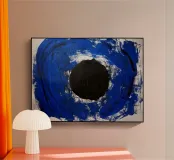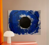Ein dunkler Kreis ruht im Zentrum eines vibrierenden Blaus – wie ein Tor in das eigene Innere. „Inner Circle“ spricht von Selbstwahrnehmung, Fokus und Energie. Es lädt dazu ein, nach innen zu sehen und in der Tiefe Ruhe zu finden.