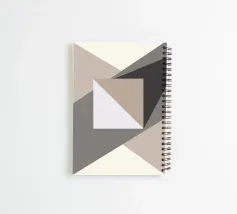 Geometric shapes in neutral tones create an abstract composition with overlapping triangles and a central square. The interplay of light and shadow adds depth to the minimalist design.