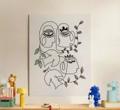 "Crowded Eternity" is a captivating line art piece featuring interconnected figures adorned with delicate leaves. The minimalist design intricately weaves together the faces, symbolizing unity and the continuity of existence. The addition of leaves enhances the sense of growth and interconnectedness, creating a visually engaging and thought-provoking artwork that explores themes of togetherness and eternal connection.