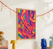 A bold abstract pattern with a touch of dynamic energy that symbolises movement and fluidity. Bright colours to evoke themes such as water, life and movement. An innovative fusion of tradition and modernity for contemporary, minimalist interiors. A unique visual language that transcends cultural boundaries.